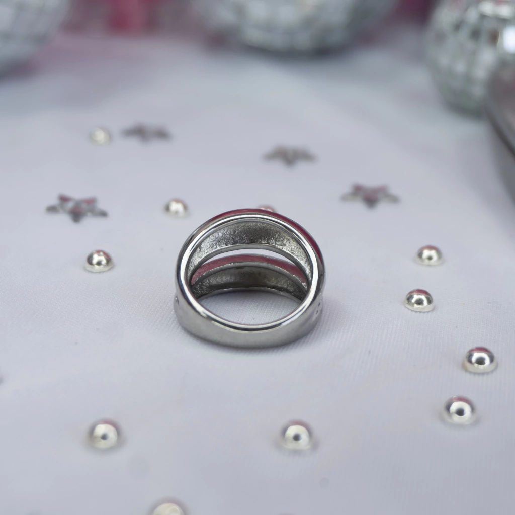 O Anel Saturn Com duas voltas bold em aço inoxidável, ele traz um design moderno, marcante e cheio de atitude. traduz presença e autenticidade. Ajustável e versátil, é o acessório ideal para quem busca estilo com personalidade cósmica.