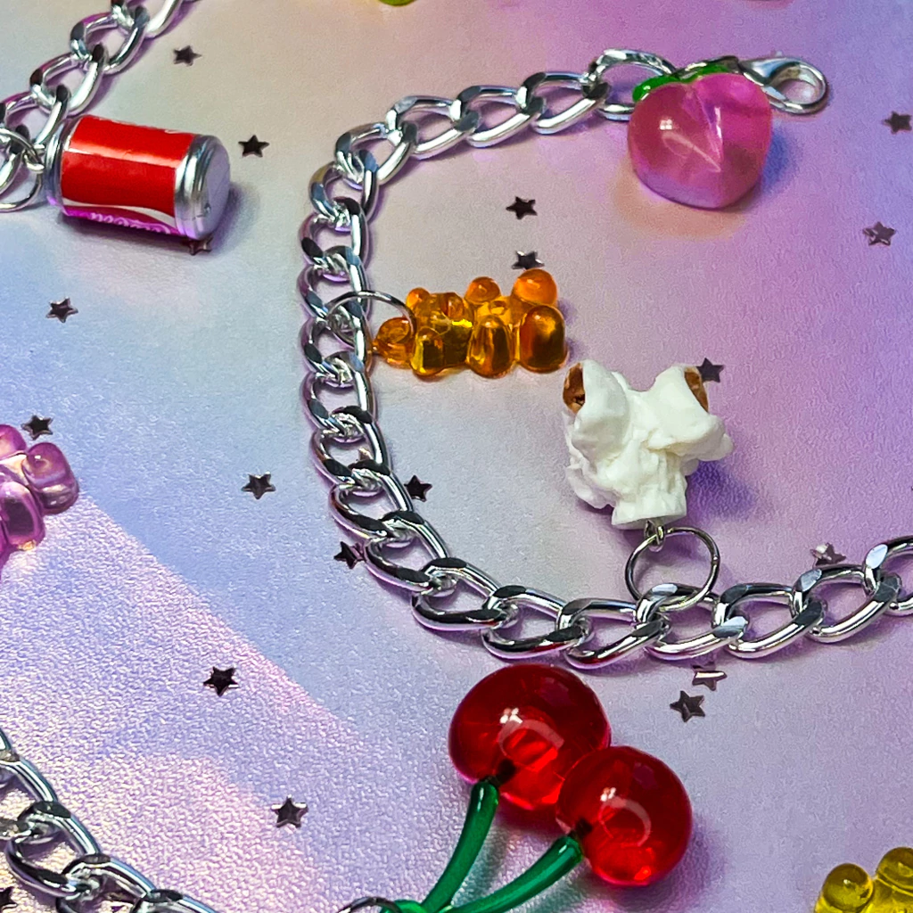 materal dos pingentes: resina e plástico.