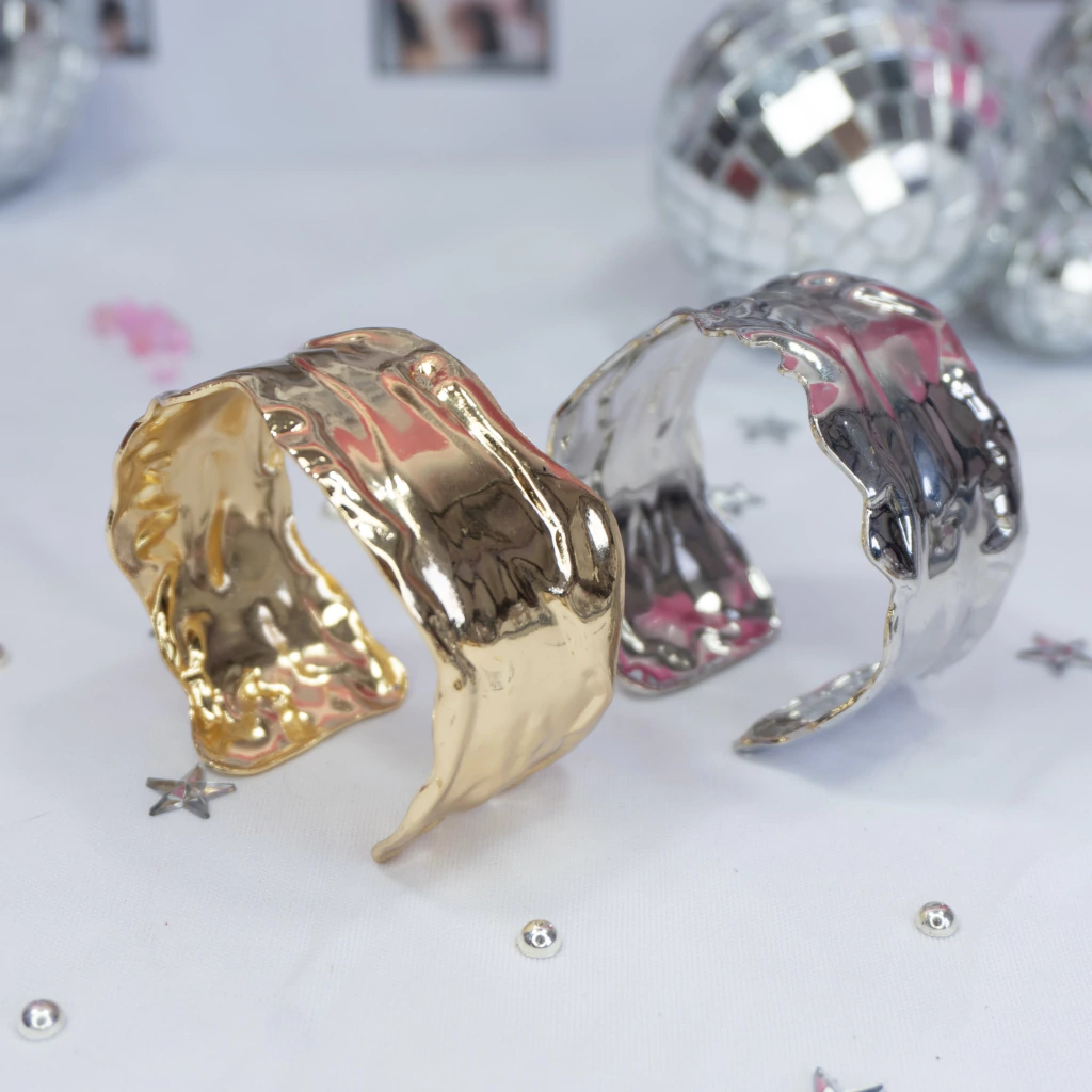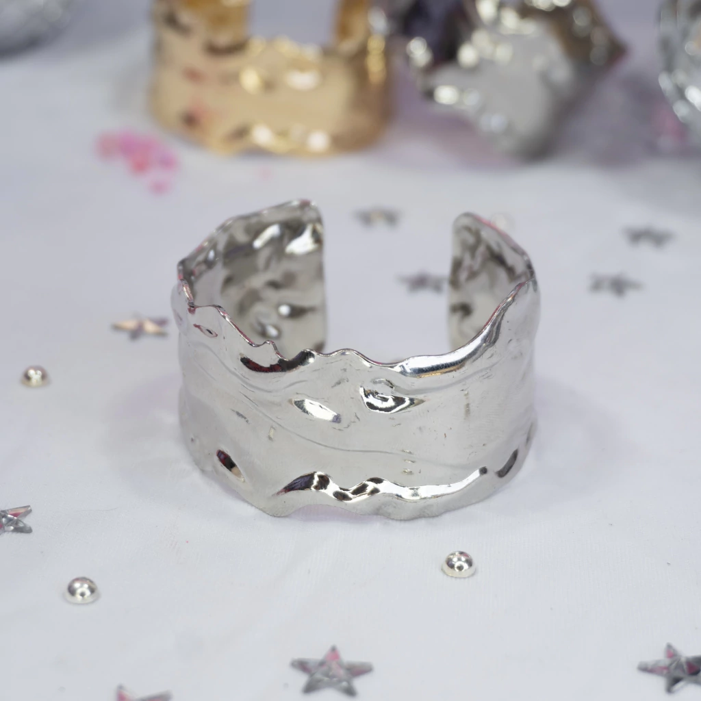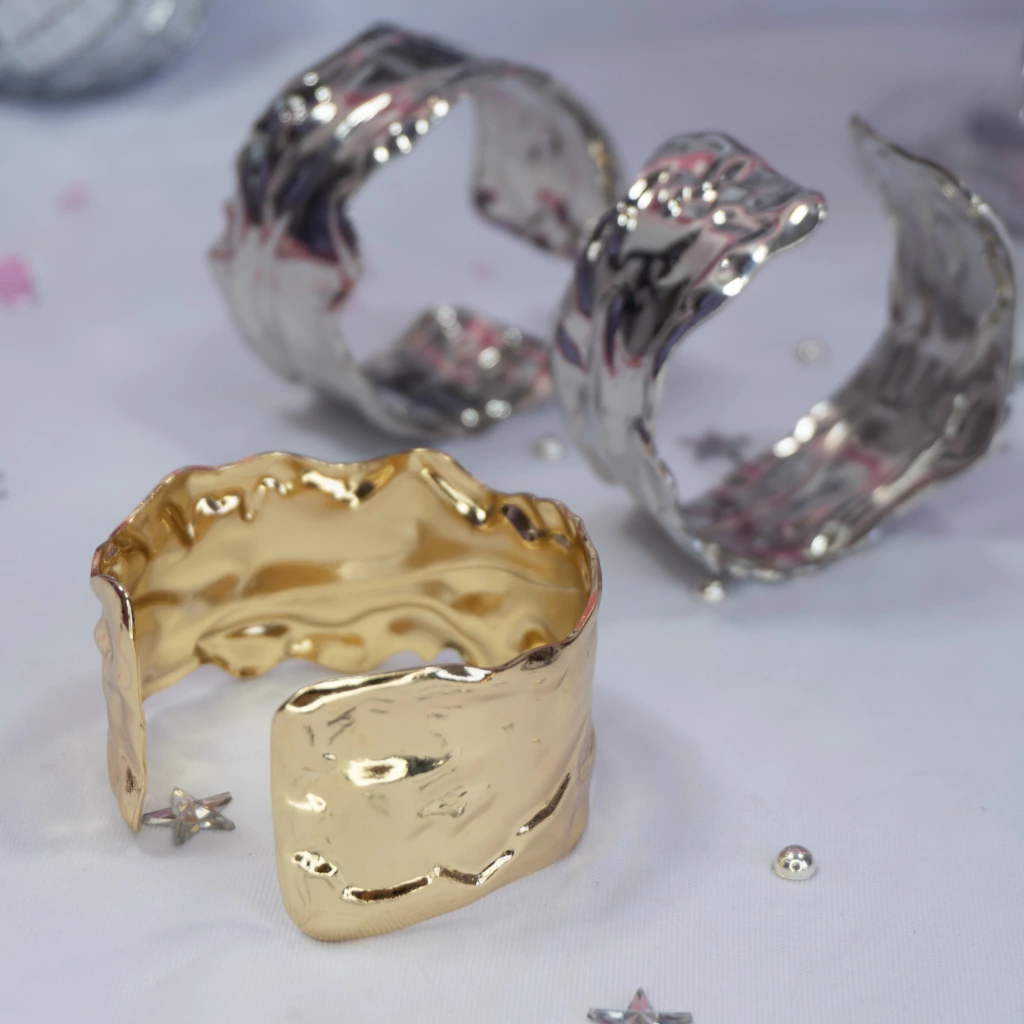 Esse é diferenciado, aquele bracelete que chama atenção, diferentes da maioria, ele tem uma textura que deixa o design chamativo e diferente. Ele por si só já é bom, mas se você for daquelas que gosta de uma pegada maximalista, pode encher o braço com modelos diferentes e cores que você vai arrasar bestie !!