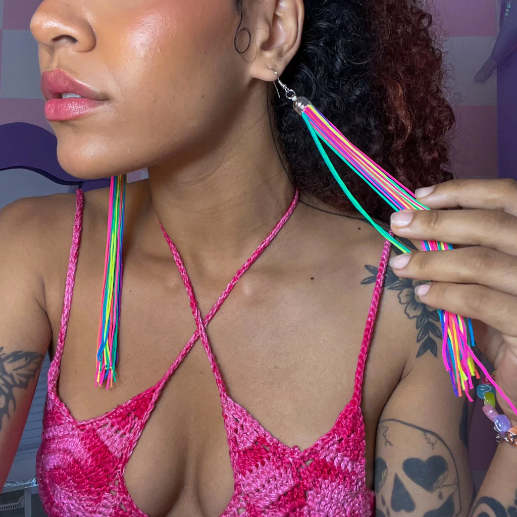 Sabe aquele brinco que combina com tudo ?! É o nosso brinco fitinhas, por ser colorido você consegue combinar com qualquer lookinho de carnaval ! Além de ser leve ele também é grandão então se você quer um brinco que vai chamar atenção nesse carnaval, você encontrou o brinco certo <3 Ah, e você também pode cortar ele se quiser menor !
