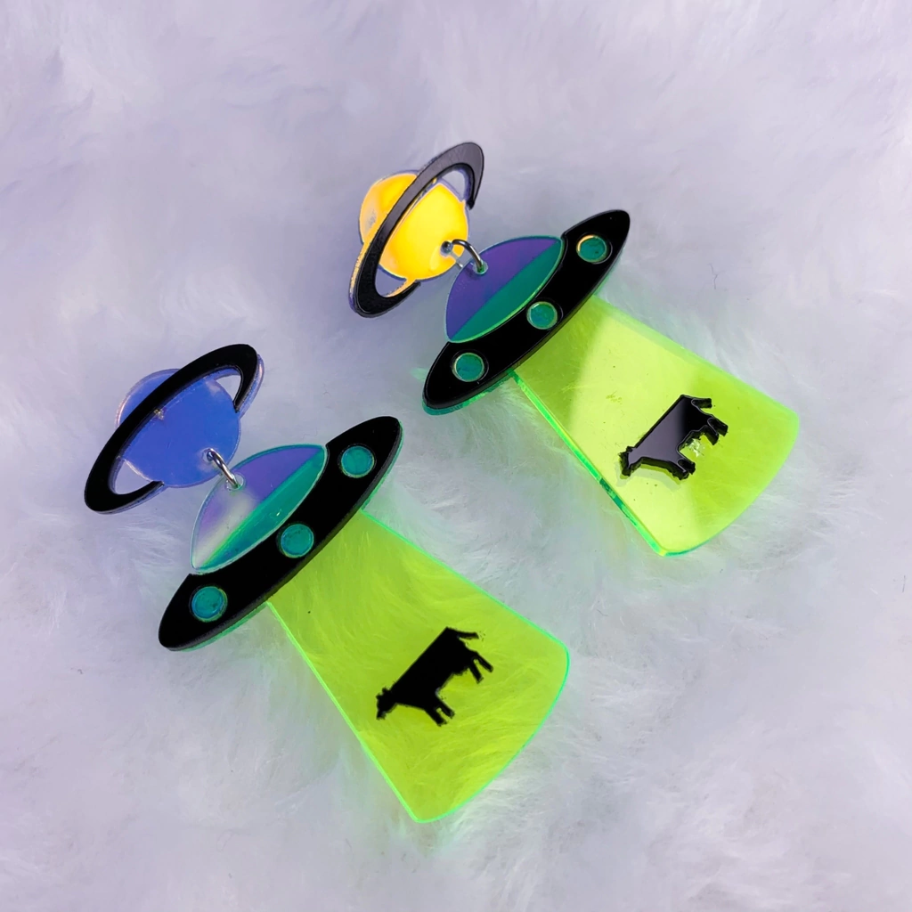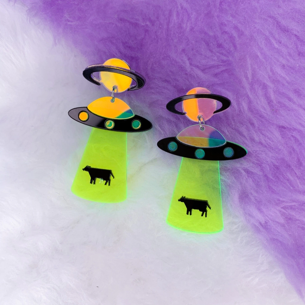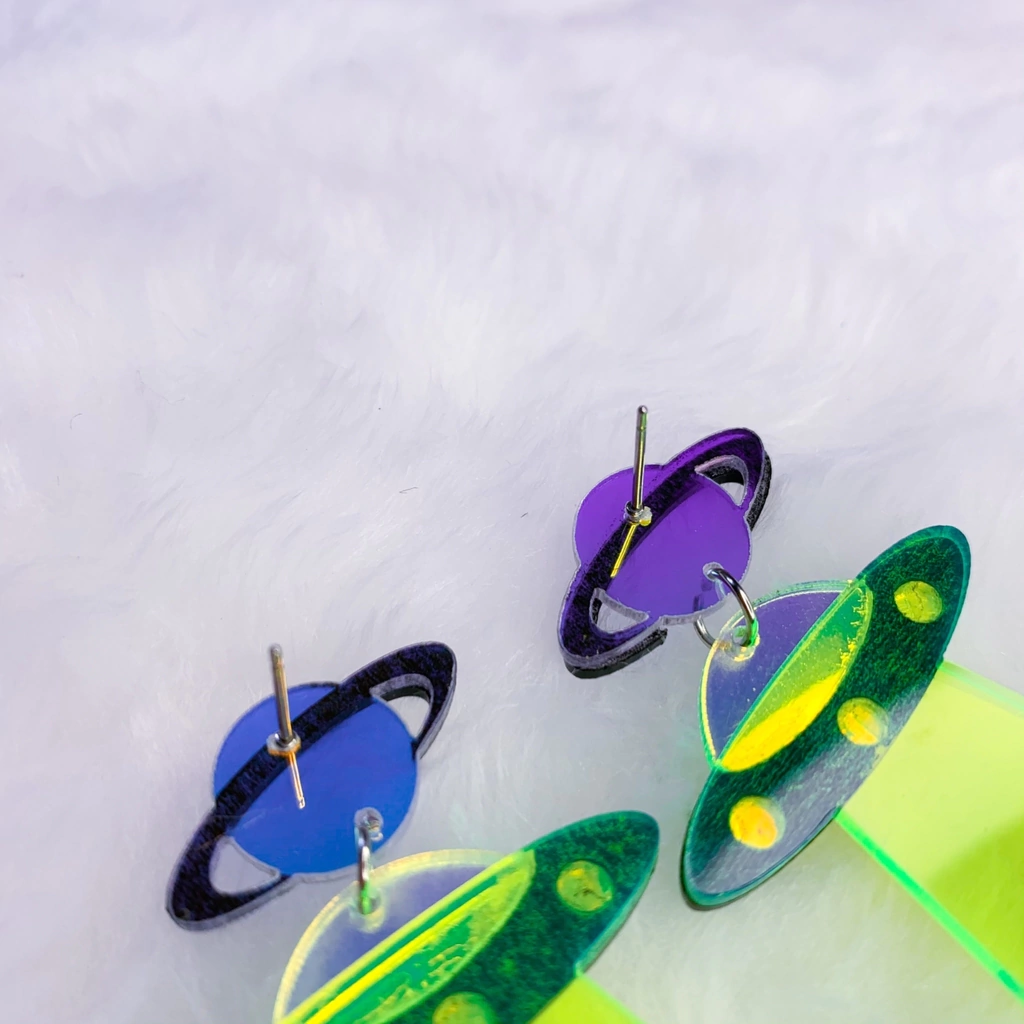 Brinco Nave Espacial 🛸 Material: Acrílico Tamanho: cerca de 6cm Peso: leve Vem com tarrachinha atrás
