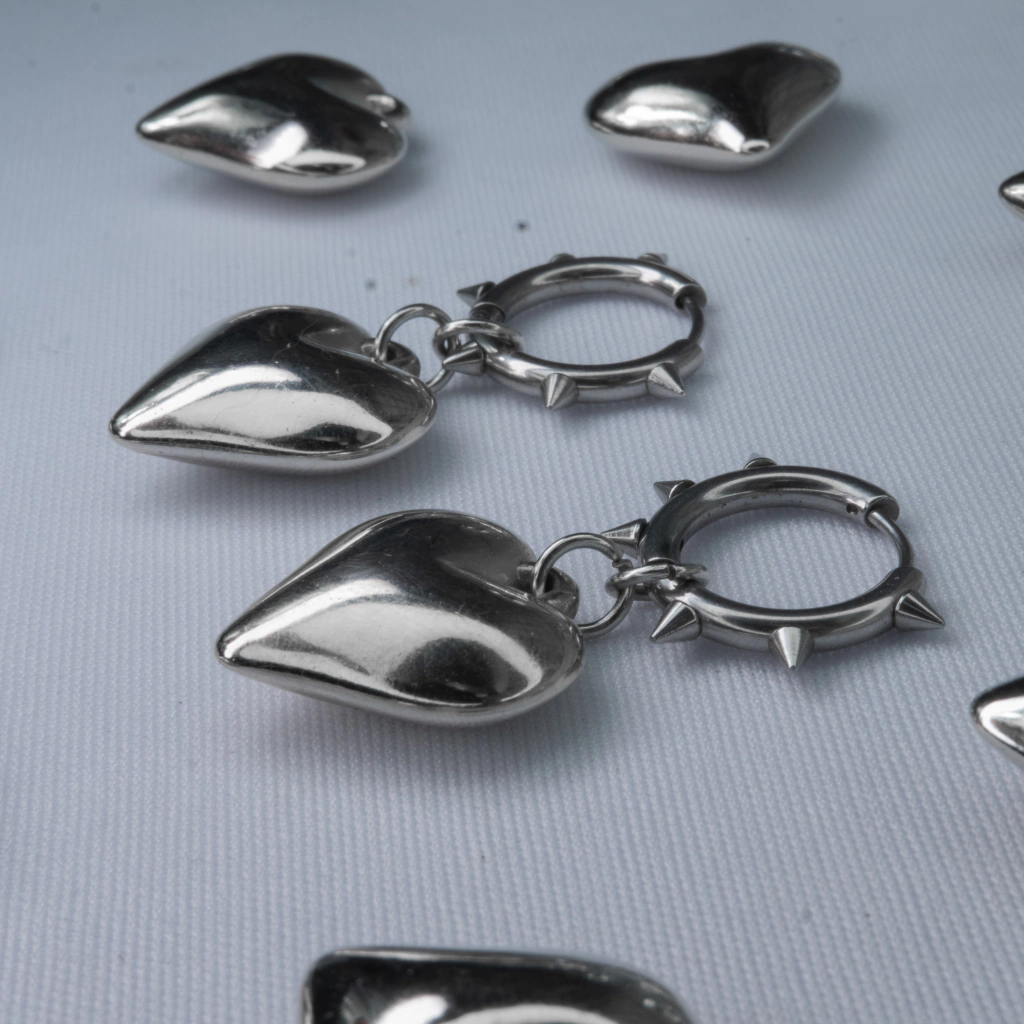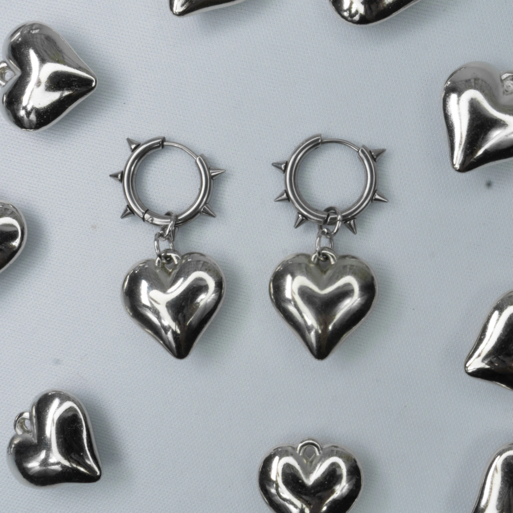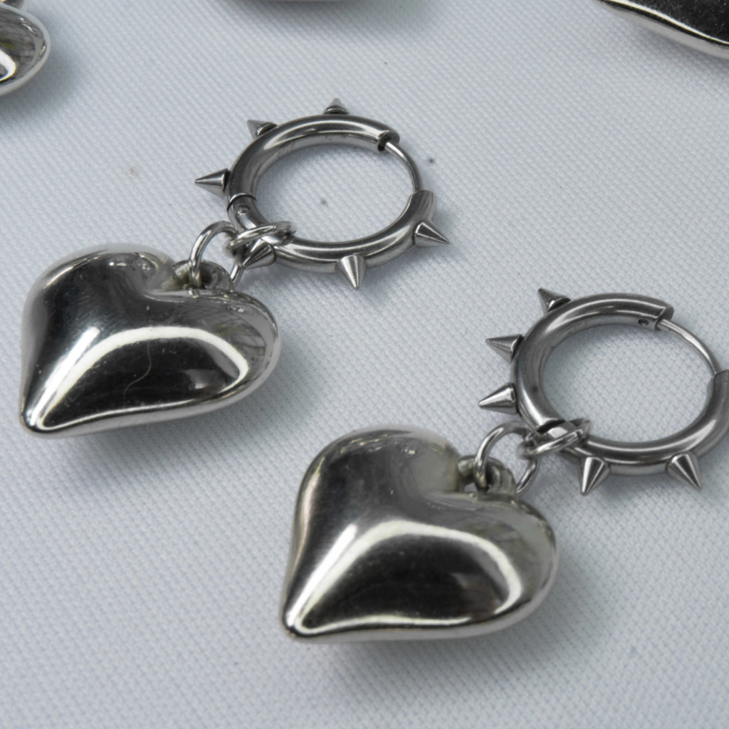 material: coração feito de abs, argolinha spike feita de aço inox, base antialérgica ( base em formato anzol feita de silicone) e argolinha de pressão (feita de aço inox para que não tem orelha furada)