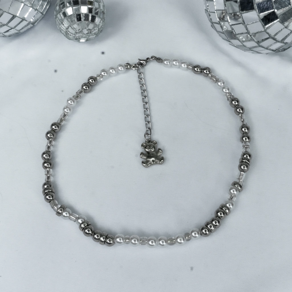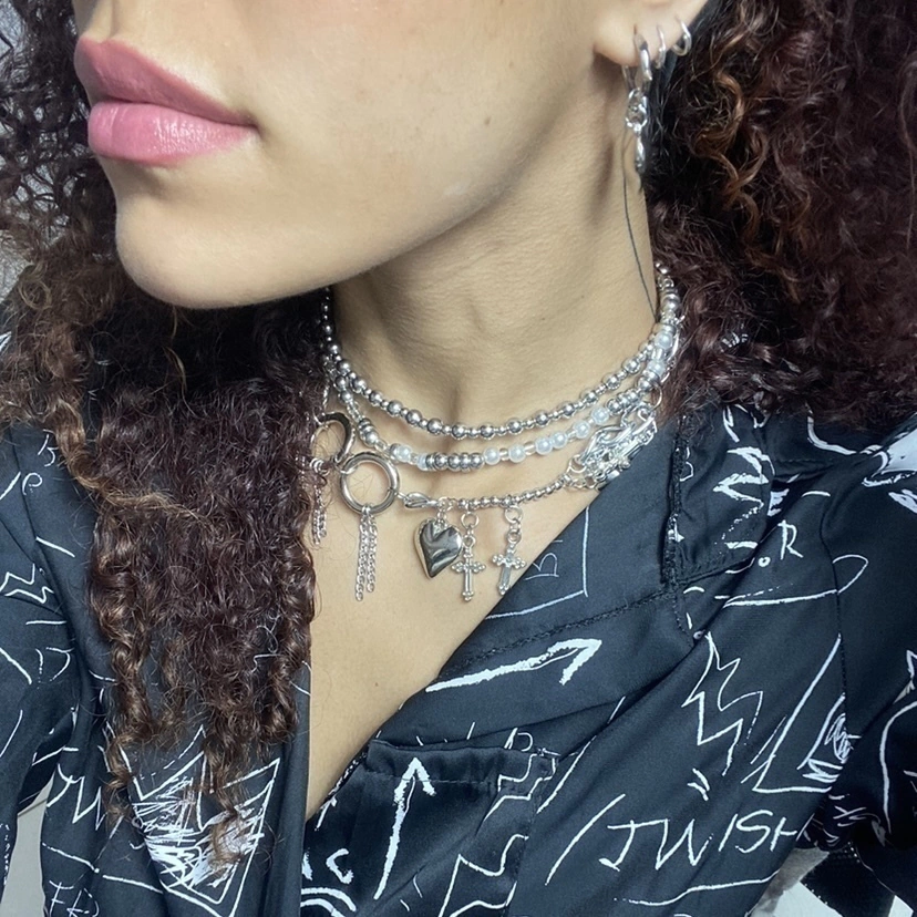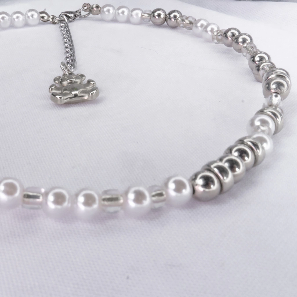 A mistura perfeita de pérolas e miçangas preteadas, um colar todo detalhado que é aquele peça chave do seu mix.