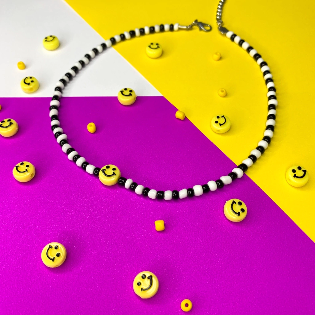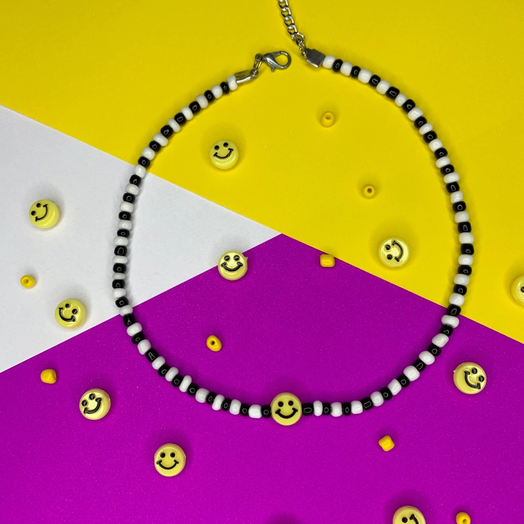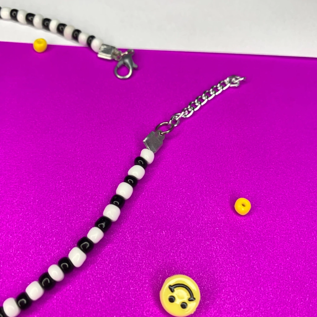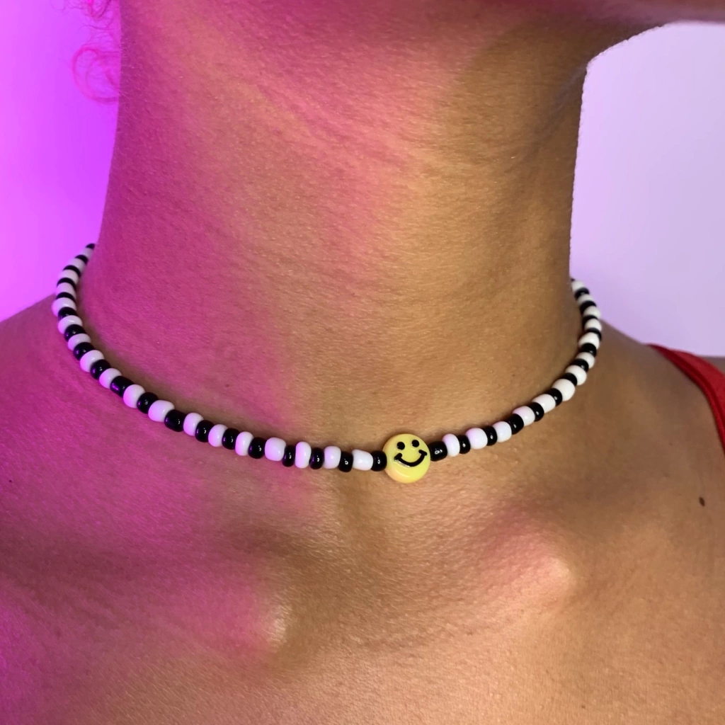 colar preto e branco com smile