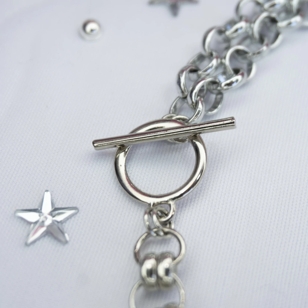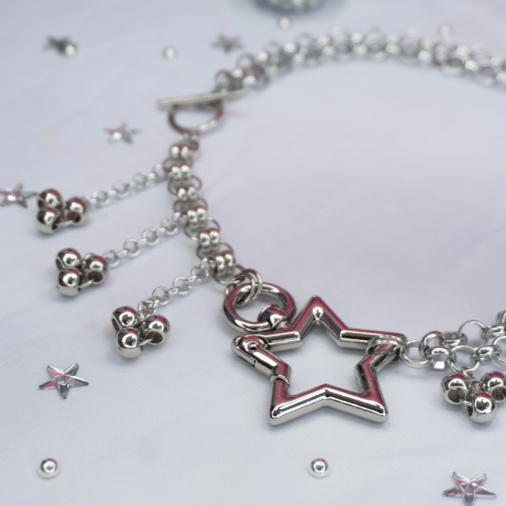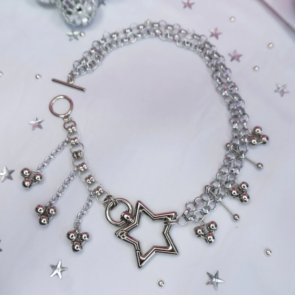 Um dos meus favoritos da coleção, o colar Star é aquele acessório que tem presença sozinho, mas acompanhado chama mais ainda atenção. feito 100% cada detelha dele foi pensado para trazer detalhes marcantes e estilo. É aquele tipo de colar que transforma até o look mais básico, deixando tudo bonito né.