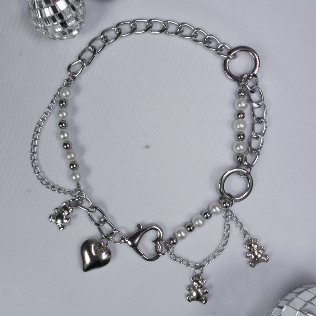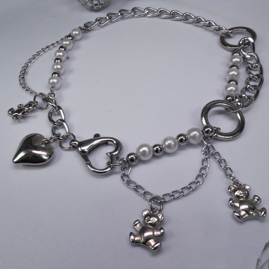 material: miçanga, corrente feita de alumínio, coração e urso feitos de ABS, argolinhas feitas de latão.