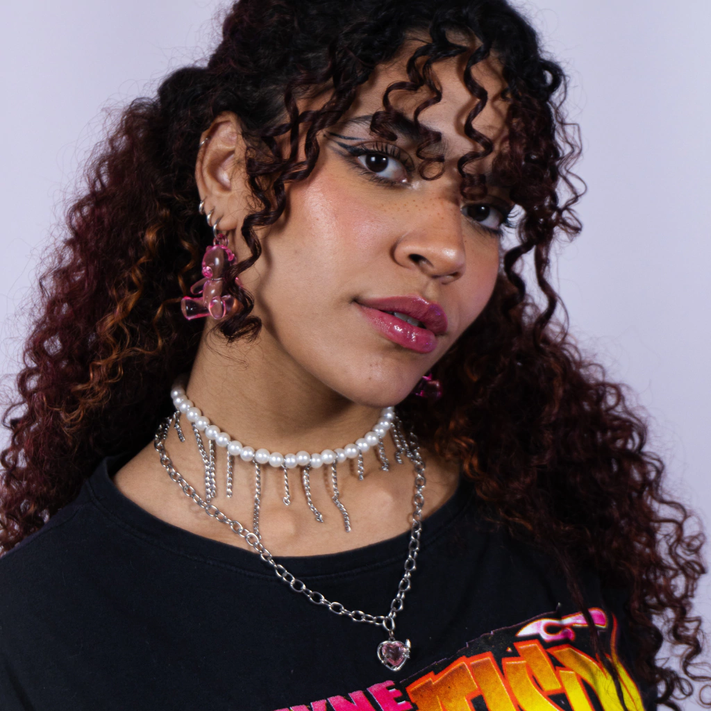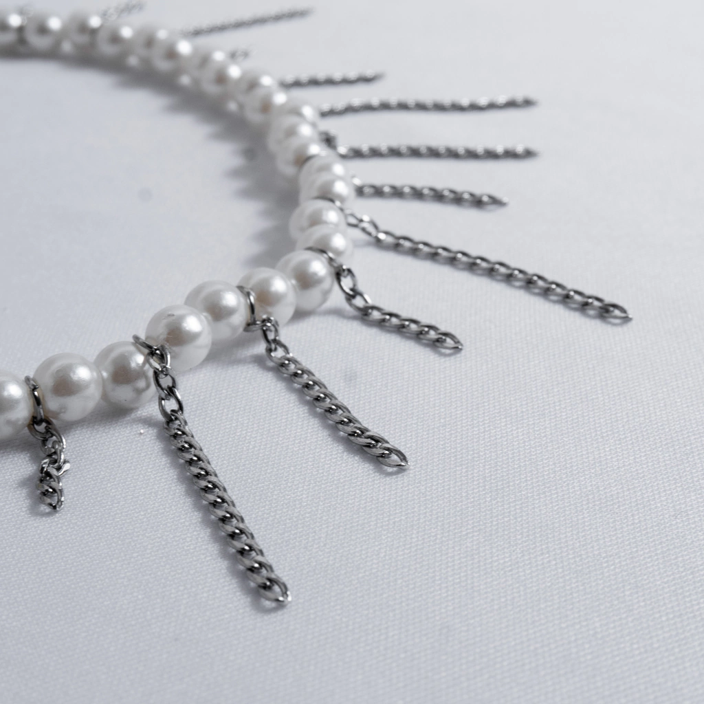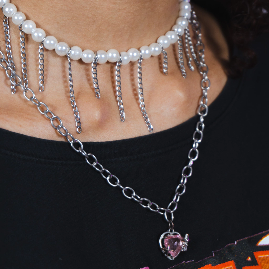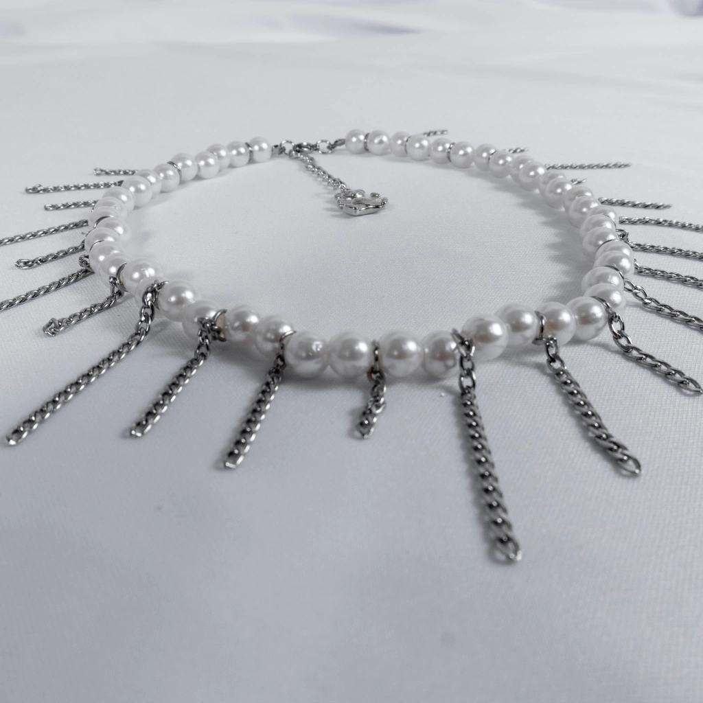 Um colar que chega chegando, pérolas e correntes é a combinação do momento, perfeito pra ser usado sozinho ou num mix de colares.