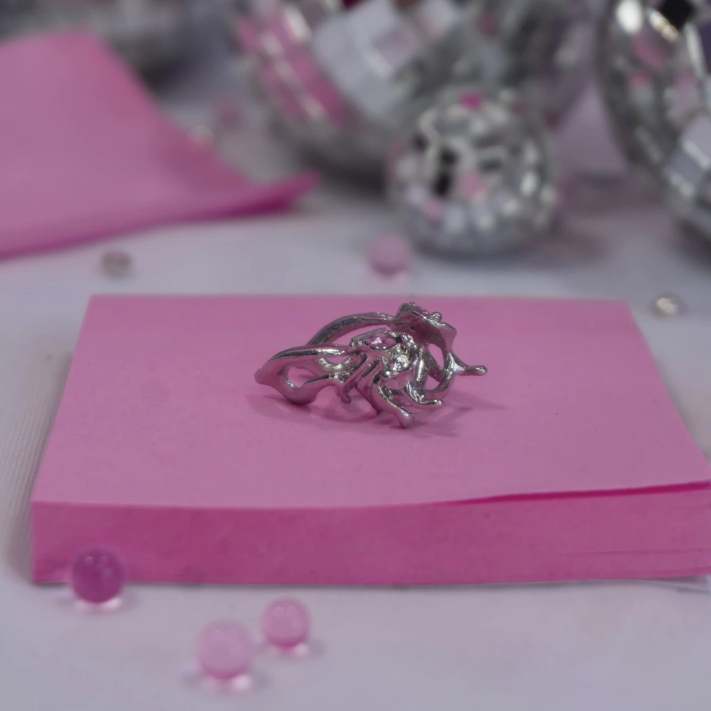 Em tom prateado, ele tem o charme do design de borboleta com uma pedrinha rosa no centro, que dá um brilho e o charme que precisava. Por ser ear cuff, não precisa de vários furos: é só encaixar na orelha e pronto, um detalhe lindo que transforma o seu visual em segundos.