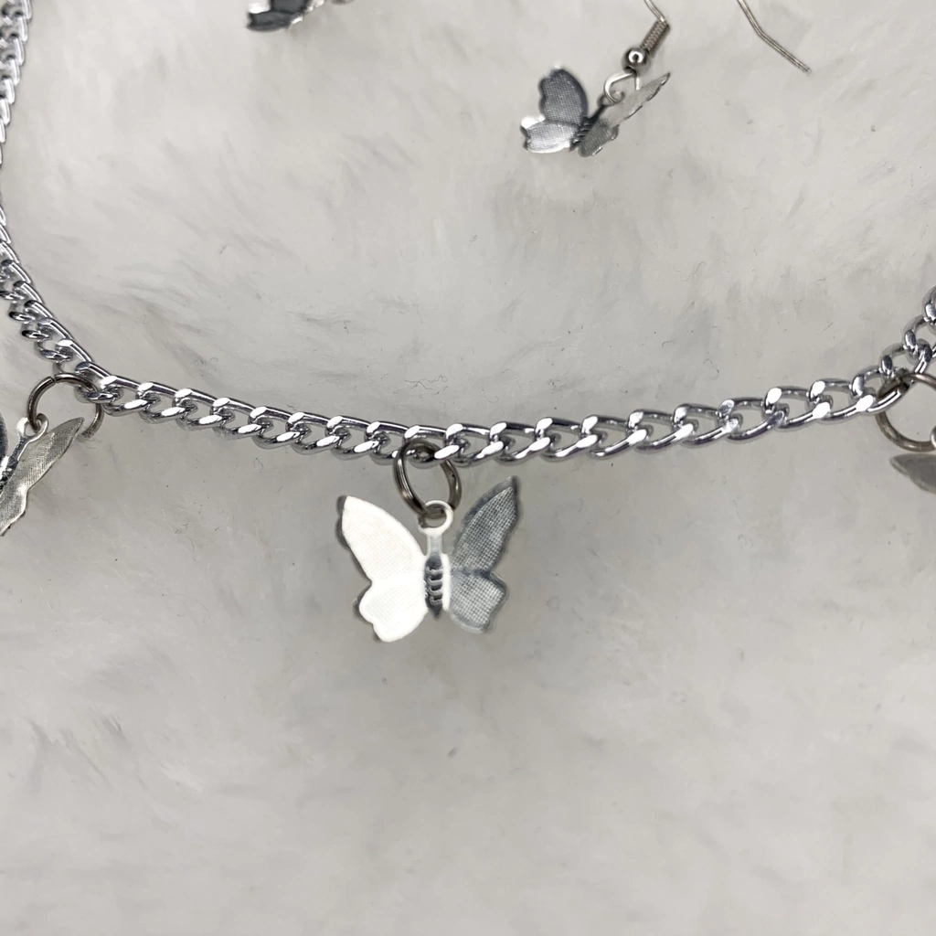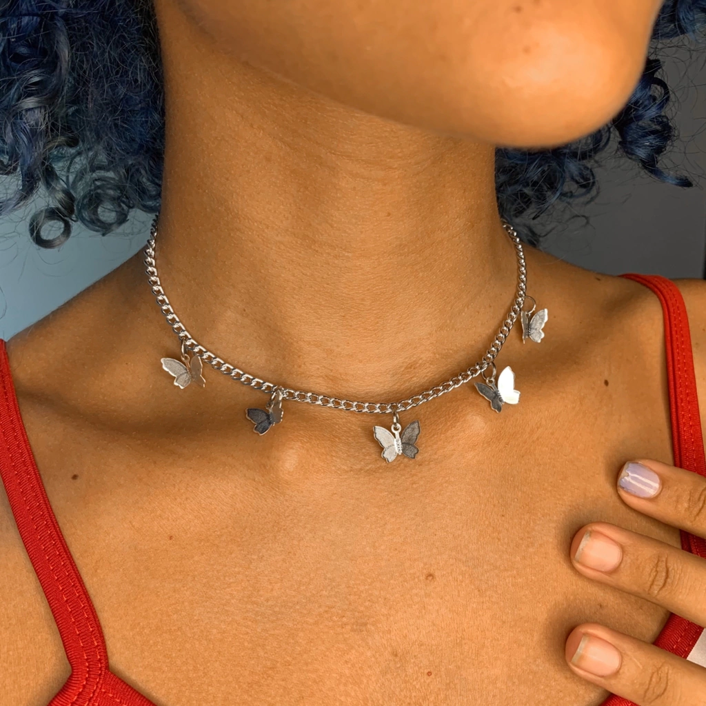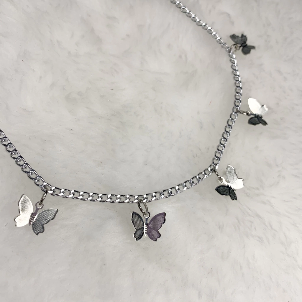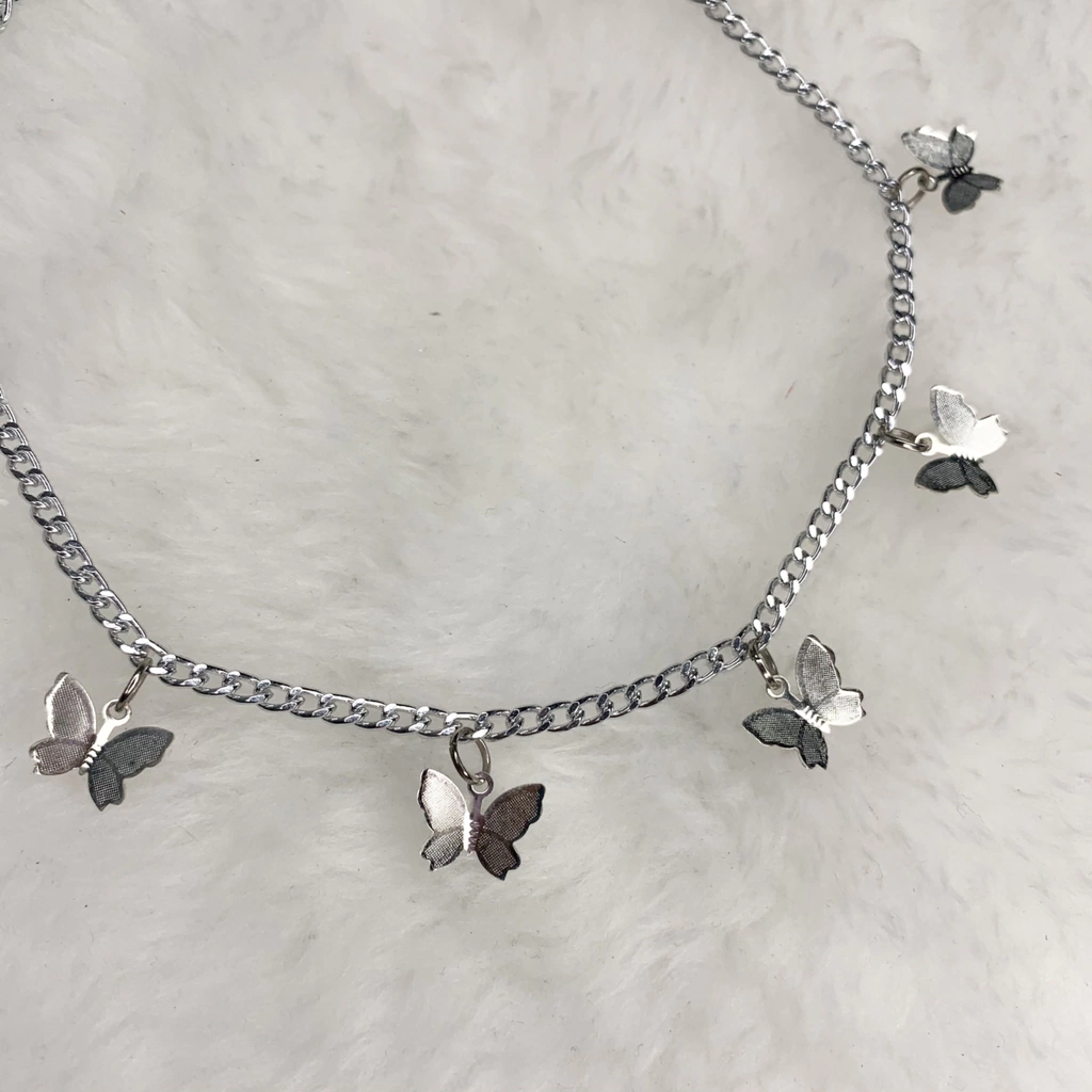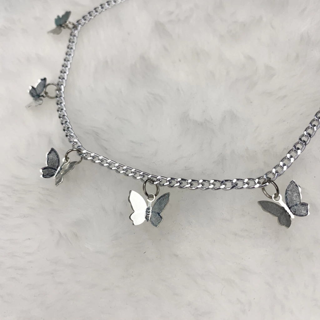 gargantilha borboleta 🦋 Corrente feita de alumínio, não fica preta Vem com 5 borboletinhas Tamanho: 45cm Qualquer dúvida só mandar um mensagem pra gente no WhatsApp 💖