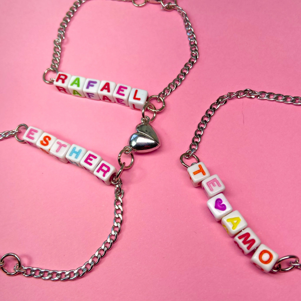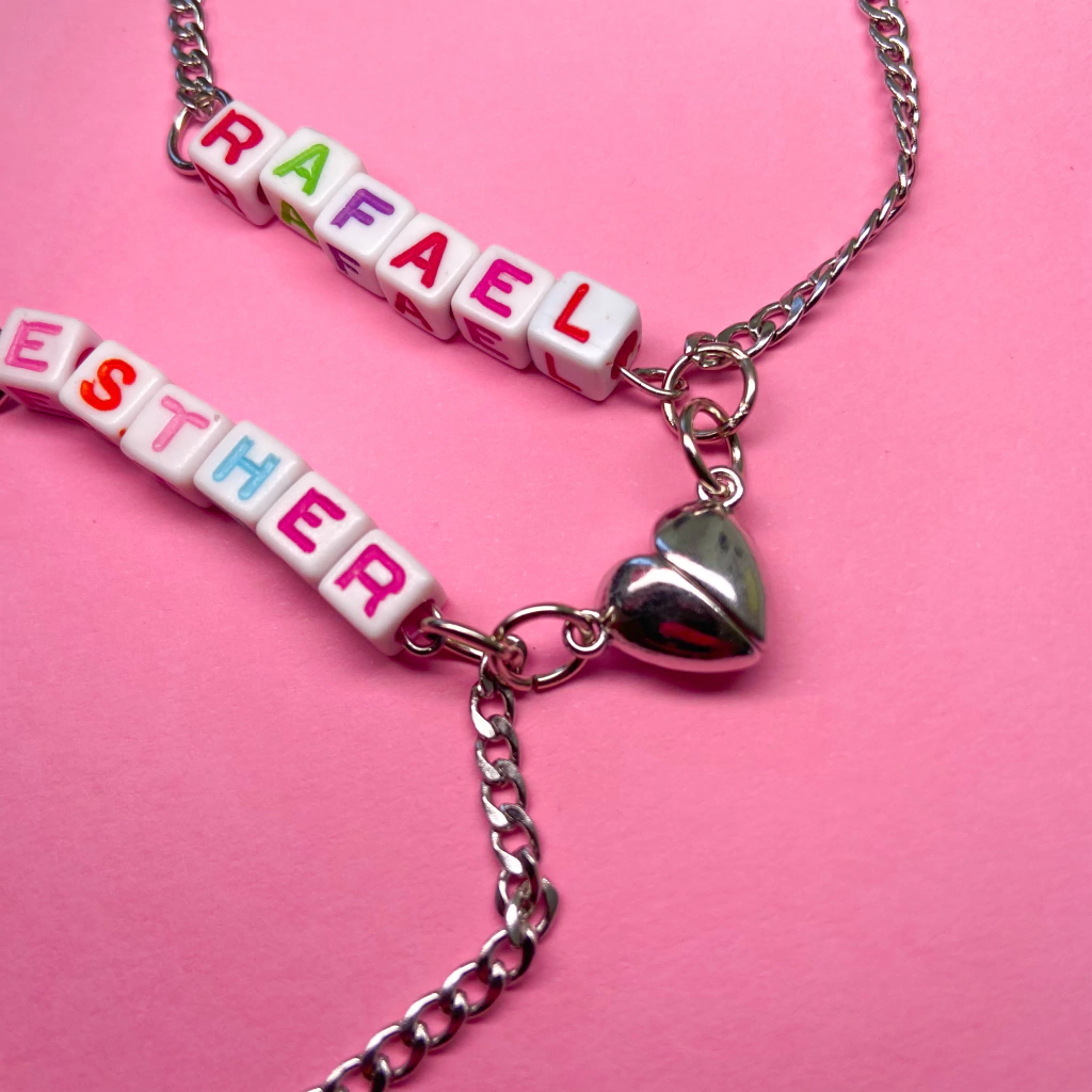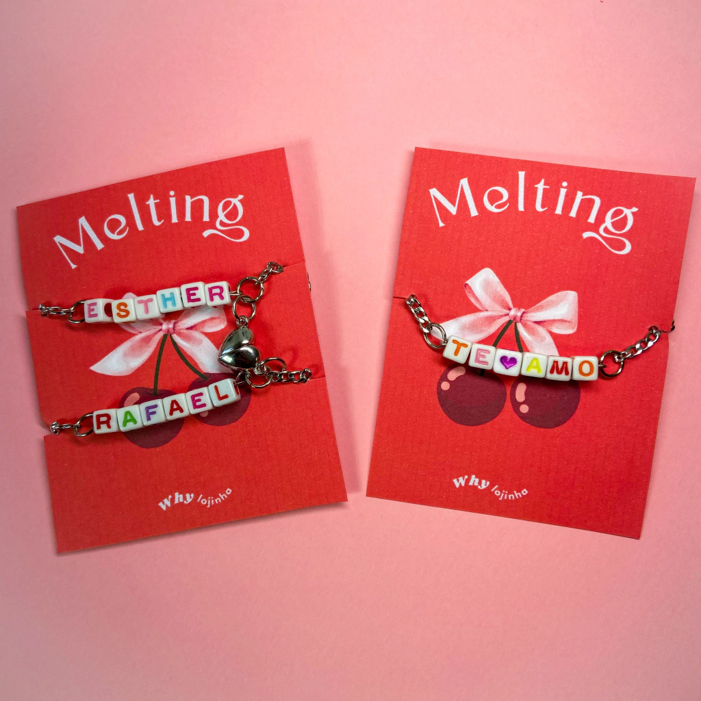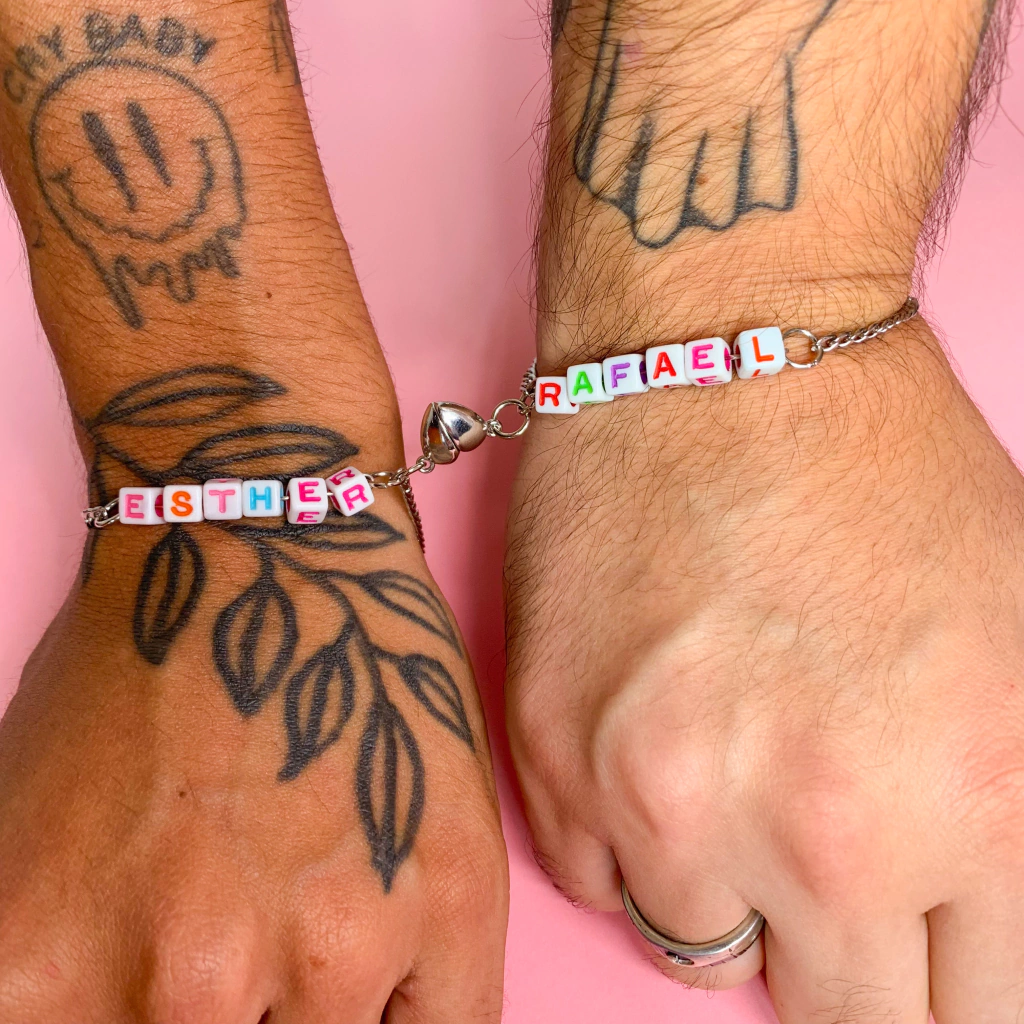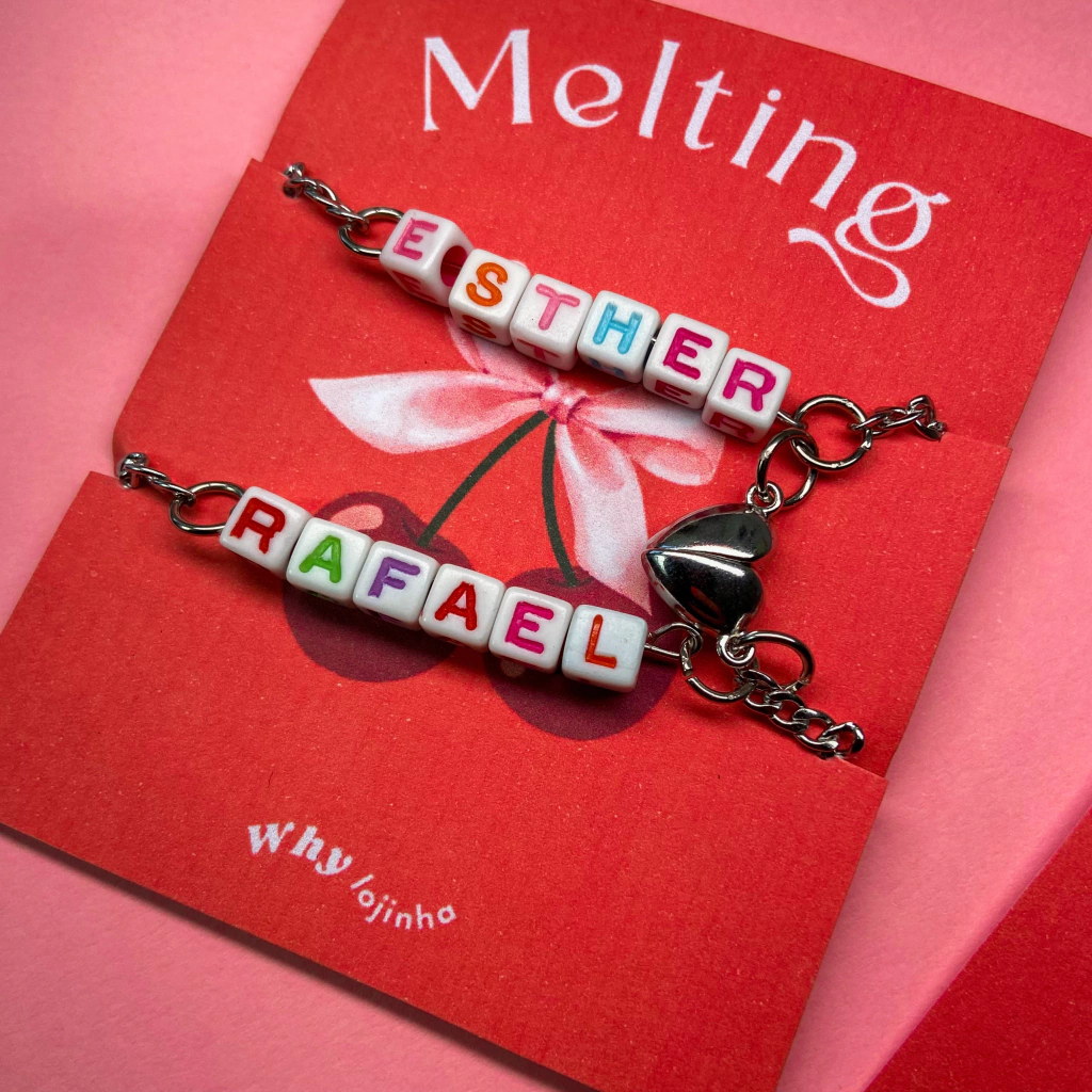 vendida a unidade ou par ( o par vem com imã em formato de coração que une as duas pulseiras ao chegar perto)